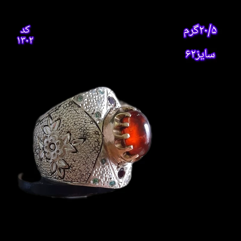 انگشتر نقره دستساز با نگین یاقوت طبیعی گارنت قلمکاری دست مخراجکاری زمرد طبیعی سایز 62 وزن 20 گرم و نیم عیار 925