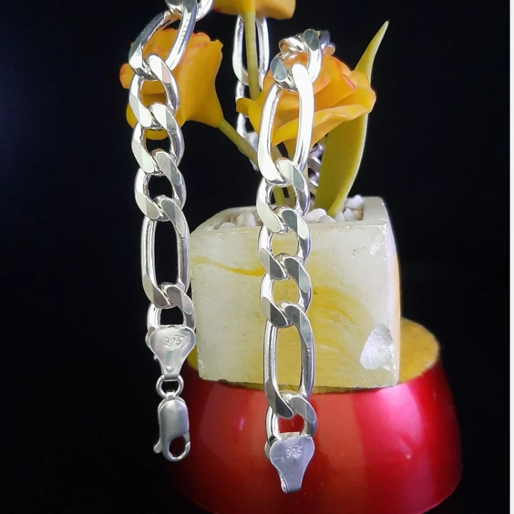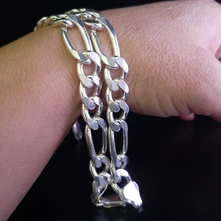 دستبند نقره مردانه دستبند نقره ترک دستبند نقره فیگارو نقره عیار 925 طول 22 سانت وزن 40 گرم عرض یا پهنای دانه ها 11 میلیمتر قواره درشت و کار وارداتی از ترکیه