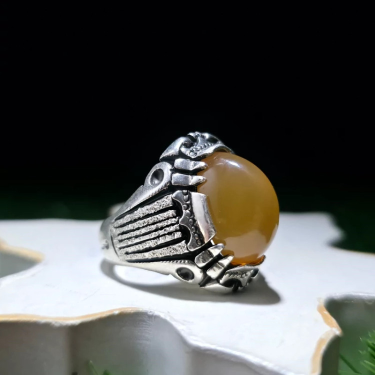 کد 2078 انگشتر نقره مردانه نگین عقیق عسلی