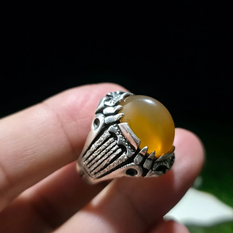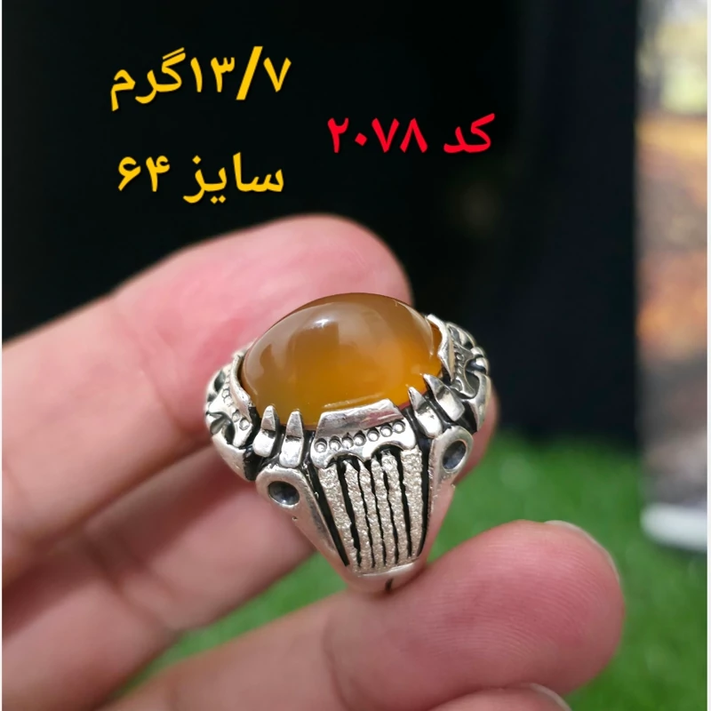 کد 2078 انگشتر نقره مردانه نگین عقیق عسلی