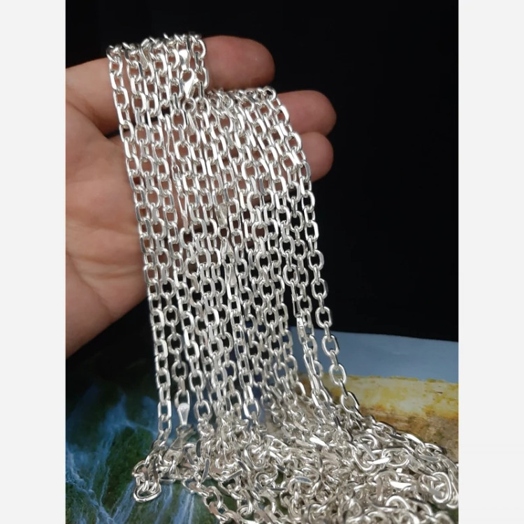 زنجیر نقره ترک زنجیر نقره مردانه عیار 925 وزن 35 گرم و نیم طول 65 سانت عرض حلقه ها 6 میلیمتر کار ترک و وارداتی مدل دیپلمات با تراش عالی
